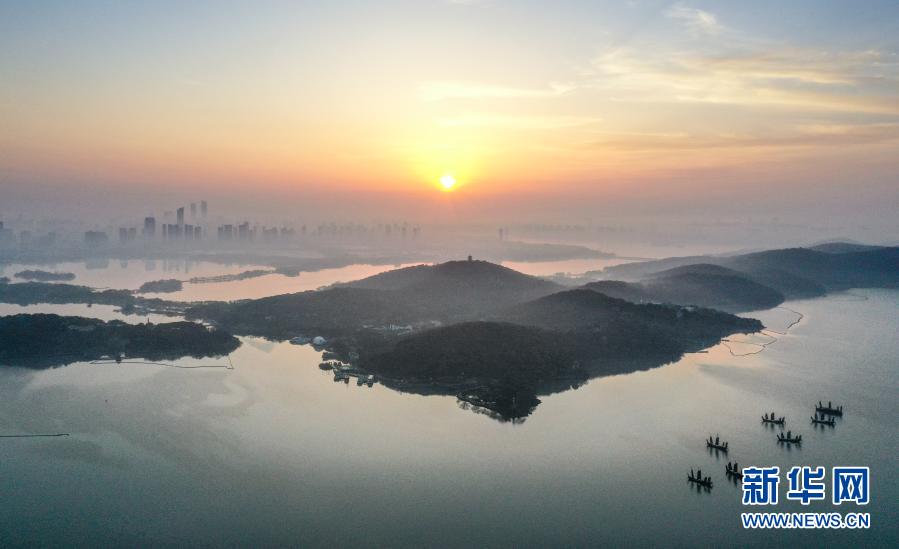 3月13日拍攝的江蘇省無錫市太湖黿頭渚景區(qū)晨景(無人機(jī)照片)。