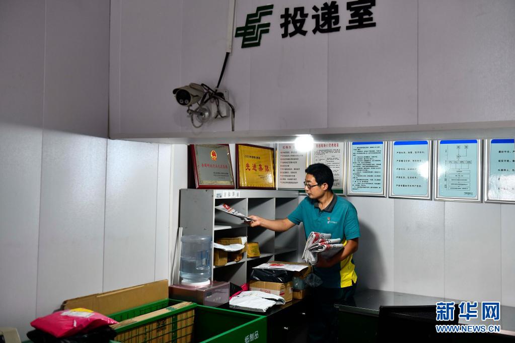 6月20日,在微山縣南陽鎮(zhèn),郵遞員王少朋在分揀郵件。