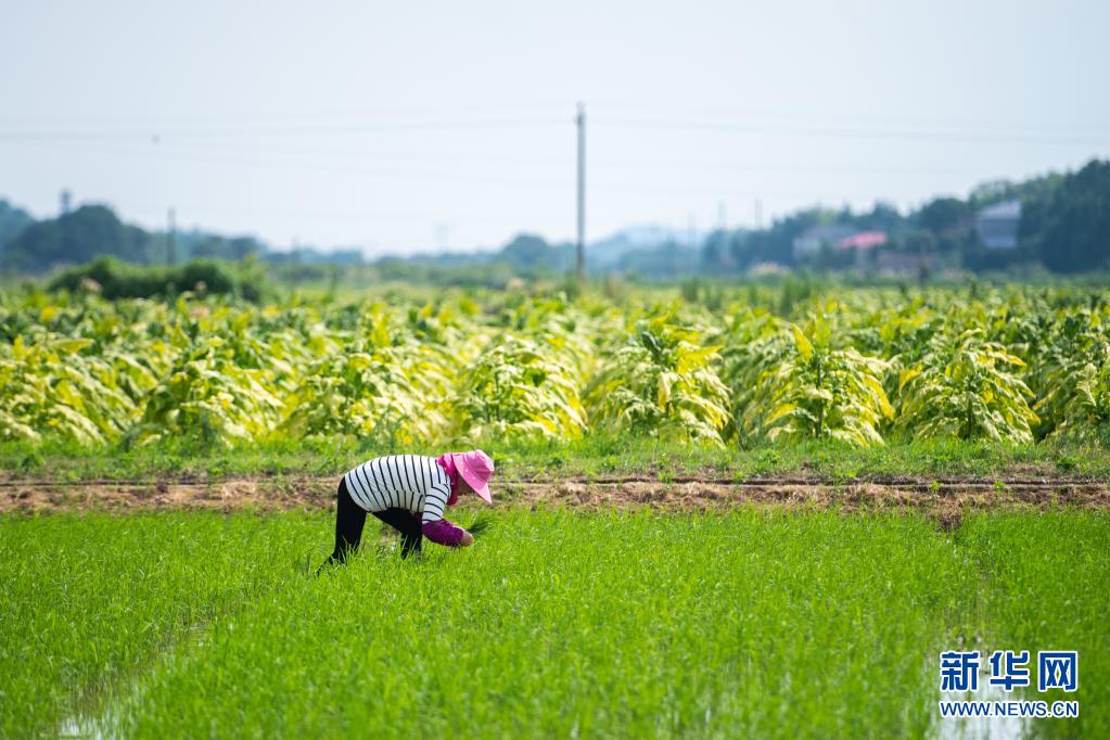 6月26日,湖南瀏陽龍伏鎮新開村村民在田間除草。