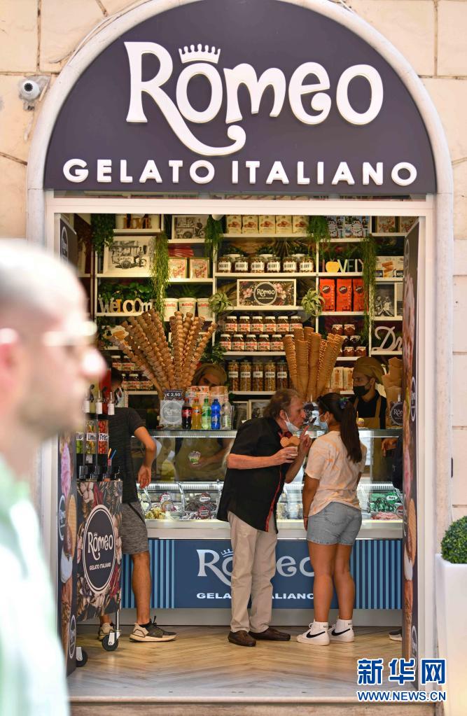 7月11日,人們在意大利羅馬的一家冰淇淋店內消費。