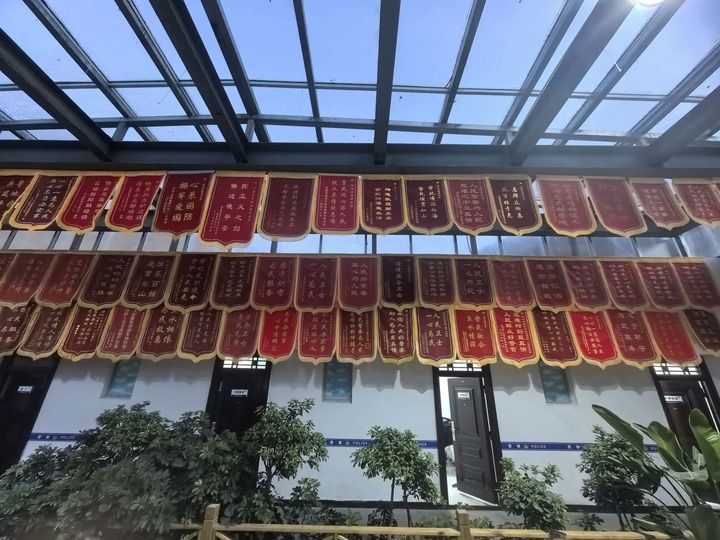 走进派出所时,正赶上晚饭时间。饭后片刻,是一天中难得的闲暇。民警们陆续聚到阳光房——这里既是温室,也是他们的活动室。芭蕉舒展,芒果垂枝,各种植物扑面而来。比高原绿意更醒目的,是墙上两排红底金字的锦旗,如同无声的勋章。