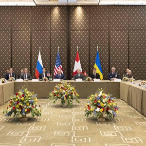 这是2月17日在瑞士日内瓦拍摄的俄美乌三方谈判现场。新华社发(瑞士联邦外交部供图)
