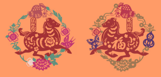 礼盒中含有两对即四张窗花,采用镂空设计,线条流畅,细节丰富。“马腹藏福”款设计灵感源于传统吉祥构图,巧妙地将饱满的“福”字藏于骏马矫健的躯体之中;“春风得意”款化用唐代孟郊“春风得意马蹄疾”的诗意,刻画小马于春风中欢腾奔驰的姿态。