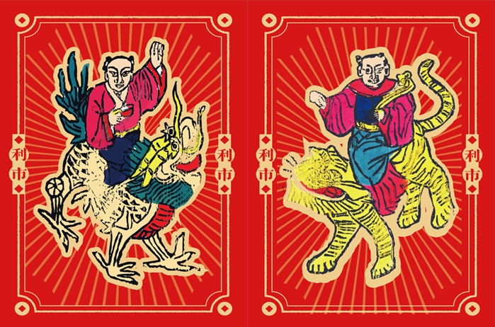 春条部分特别新增两幅“利世”主题的出行甲马春条,图案取自《中国木版年画集成·云南甲马卷》。古时贴于鞍马,祈求路途顺畅;今时贴于家门、车内,寓意人生旅途人马平安,招财进宝。