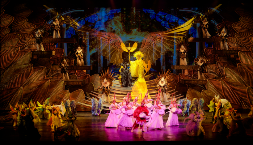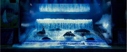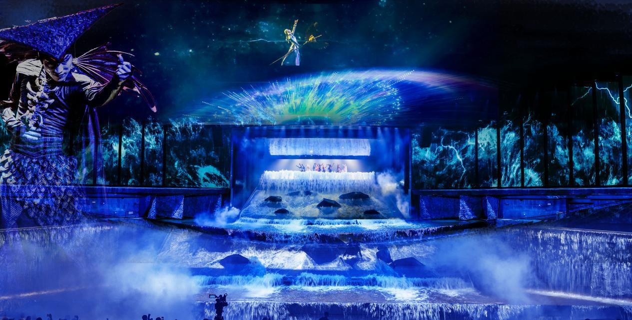 在舞美设计方面,利用多种形式和特技打造视觉盛宴。想象未及的舞台奇景,不仅保留了原版纯洁灵动美轮美奂的白孔雀,和数百吨洪水席卷舞台的奇观,更是新增了一见动容的魅力科技,以开合大屏、冰屏阵列、高清LED阵列,高清投影组成的180度沉浸式多媒体舞台,视觉层次丰富,完美地将多媒体与演员表演结合起来,亦幻亦真如临其境,带领观众进入一个神奇的东方世界。