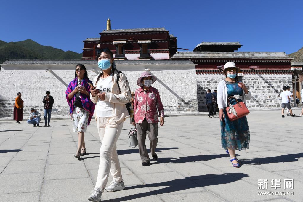 7月12日,游客在拉卜楞寺參觀。新華社記者 陳斌 攝