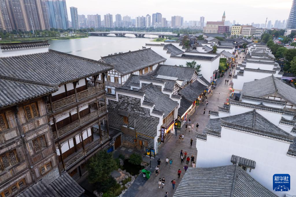 9月2日,游客在常德河街游玩(无人机照片)。
