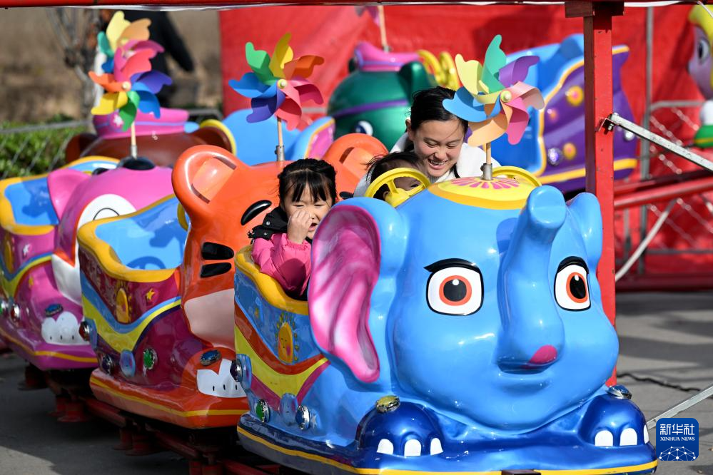 11月24日,家长带着小朋友在萧县“十月古会”上游玩。