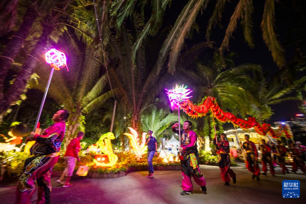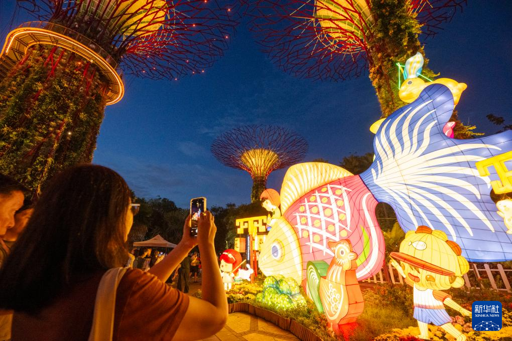 当日,新加坡滨海湾花园中秋节灯饰正式亮起。
