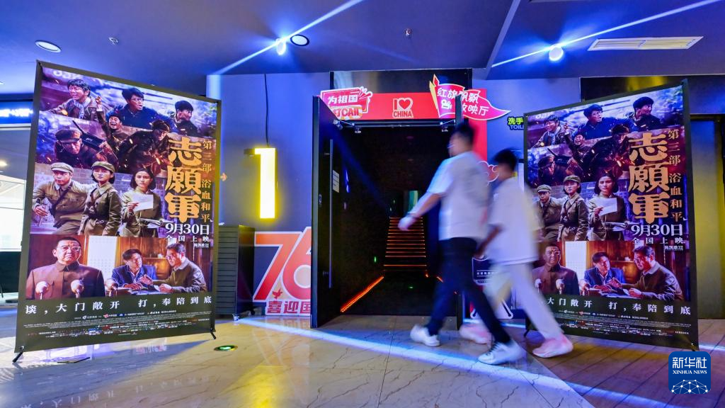 10月4日,在天津市滨海新区一家影城,观众入场观看电影《志愿军:浴血和平》。