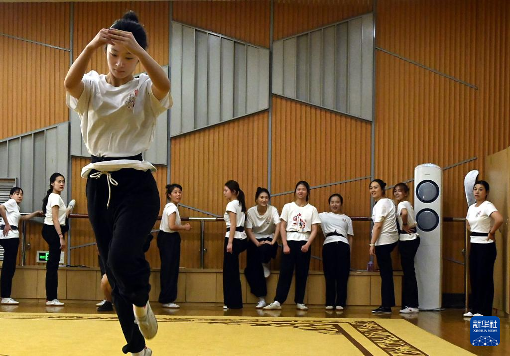 10月12日,浙江婺剧艺术研究院的演员在排练厅内练习基本功。