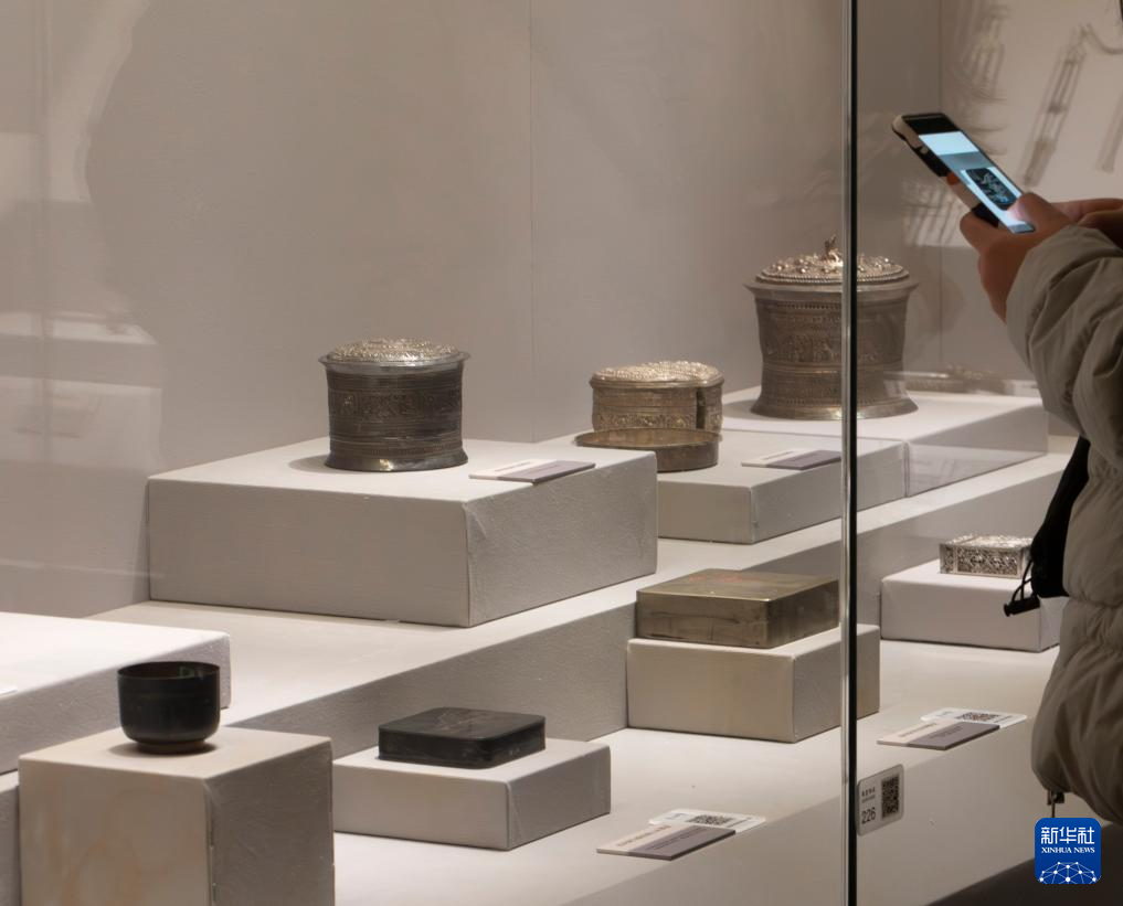 10月25日,观众在云南省博物馆拍摄乌铜走银墨盒。