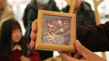 2月11日,游客在活动现场学习豆腐包制作。