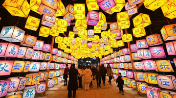 2月12日,市民在河南省济源市一处春节临时市场选购饰品。