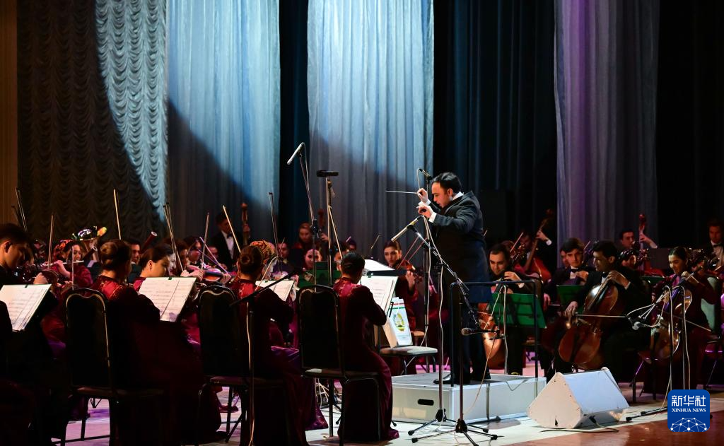 2月23日,在土库曼斯坦阿什哈巴德,演员在“欢乐春节·丝路欢歌”演出上表演。