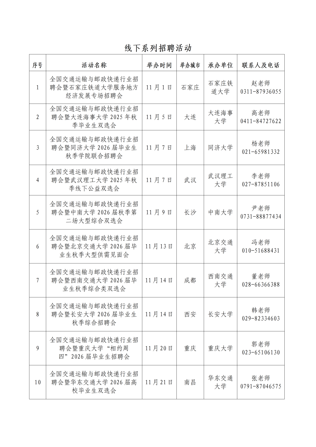 全国交通运输与邮政快递行业面向2026届高校毕业生秋季招聘活动