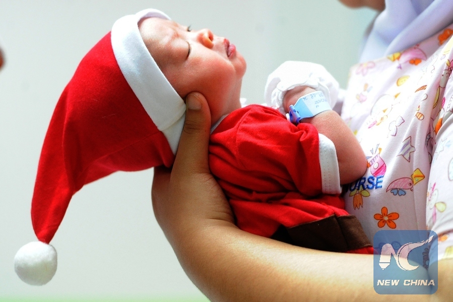 File Photo: A nurse takes care of a newborn baby dressed in Santa outfit ahead of the Christmas season at a hospital in Bangkok, Thailand, Dec. 21, 2017. (Xinhua/Rachen Sageamsak)