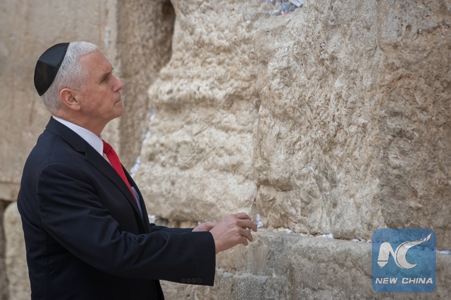 U.S. Vice President Mike Pence visits the Western Wall in Jerusalem's Old City, on Jan. 23, 2018. (Xinhua/JINI)