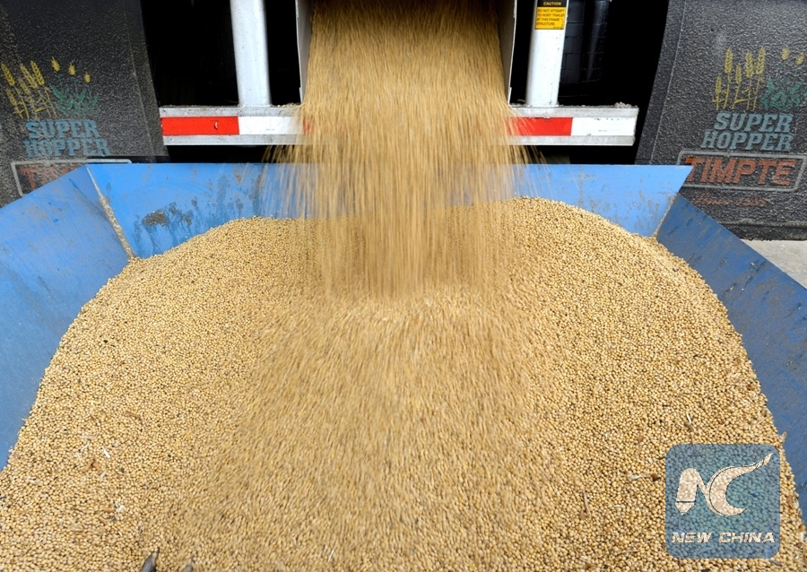 File Photo: An incoming truckload of soybeans is unloaded at a farm in Fargo, North Dakota, U.S., Dec. 6, 2017. (Xinhua/REUTERS)