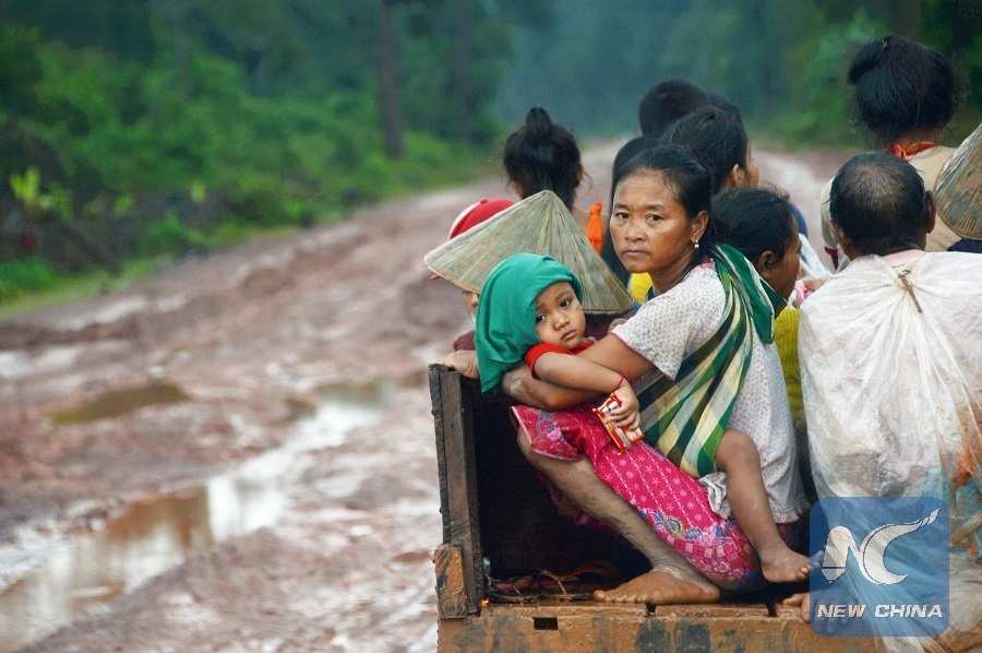 Photo taken on July 27, 2018 shows villagers after an under-construction dam collapsed in Sanamxay District, Attapeu Province, Laos. (Xinhua/Liu Ailun)