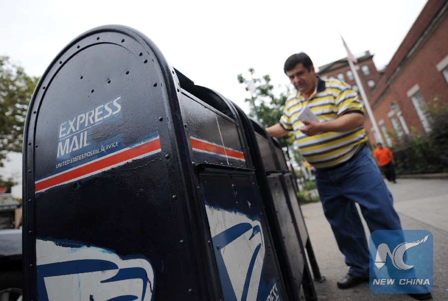 File Photo: A man puts a letter into a mailbox outside a post office in New York, the United States, August 6, 2009. (Xinhua/Gu Xinrong)