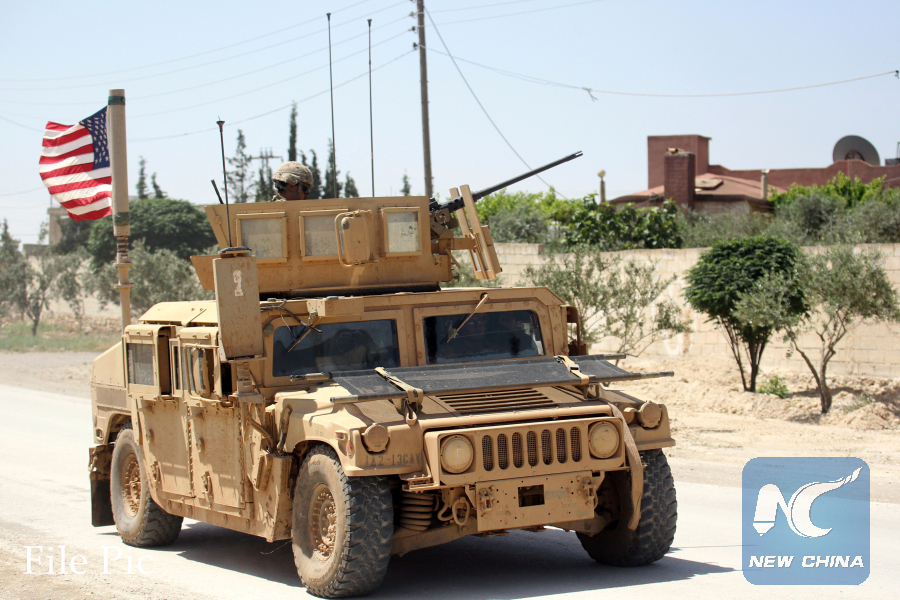 The U.S. flag flutters on a military vehicle in Manbij countryside, Syria, on May 12, 2018. (Reuters file photo)