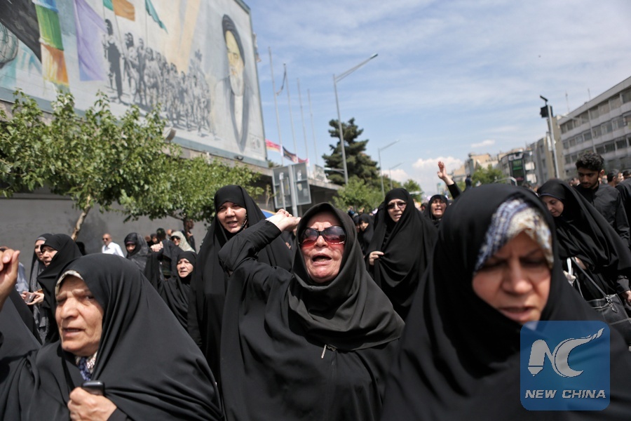 File Photo: People chant slogans in a protest to condemn U.S. withdrawal from the 2015 Iran nuclear deal in Tehran, Iran, on May 11, 2018. (Xinhua/Ahmad Halabisaz)