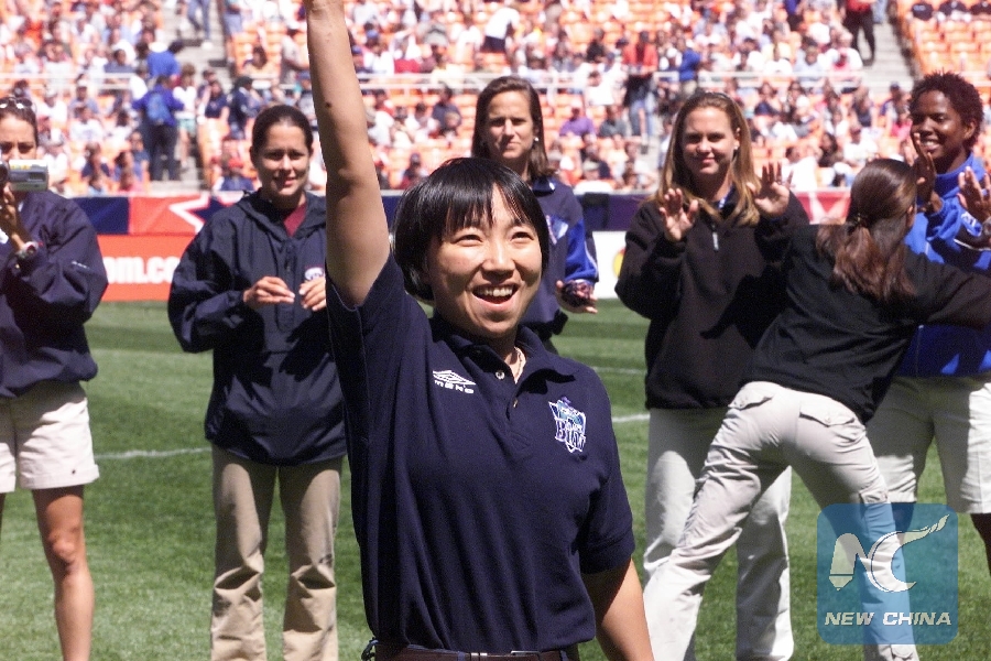 China international striker Sun Wen, who plays for the Atlanta Beat, attends the inauguration of Women's United Soccer Association (WUSA) in Washington on April 14, 2001. (Xinhua/Wang Yan)