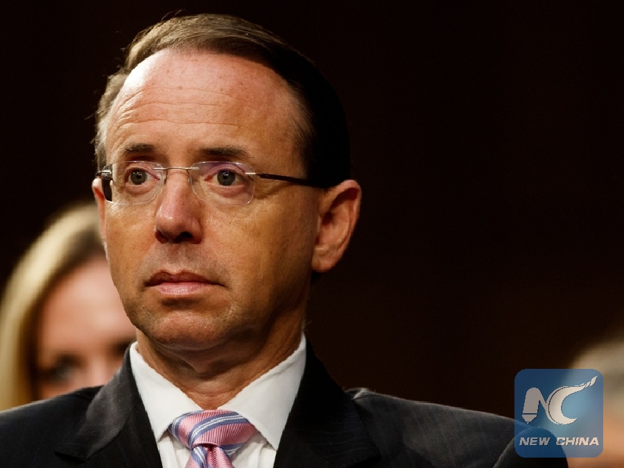 File photo taken on Sept. 4, 2018 shows U.S. Deputy Attorney General Rod Rosenstein attending a Senate confirmation hearing in Washington D.C., the United States. (Xinhua/Ting Shen)