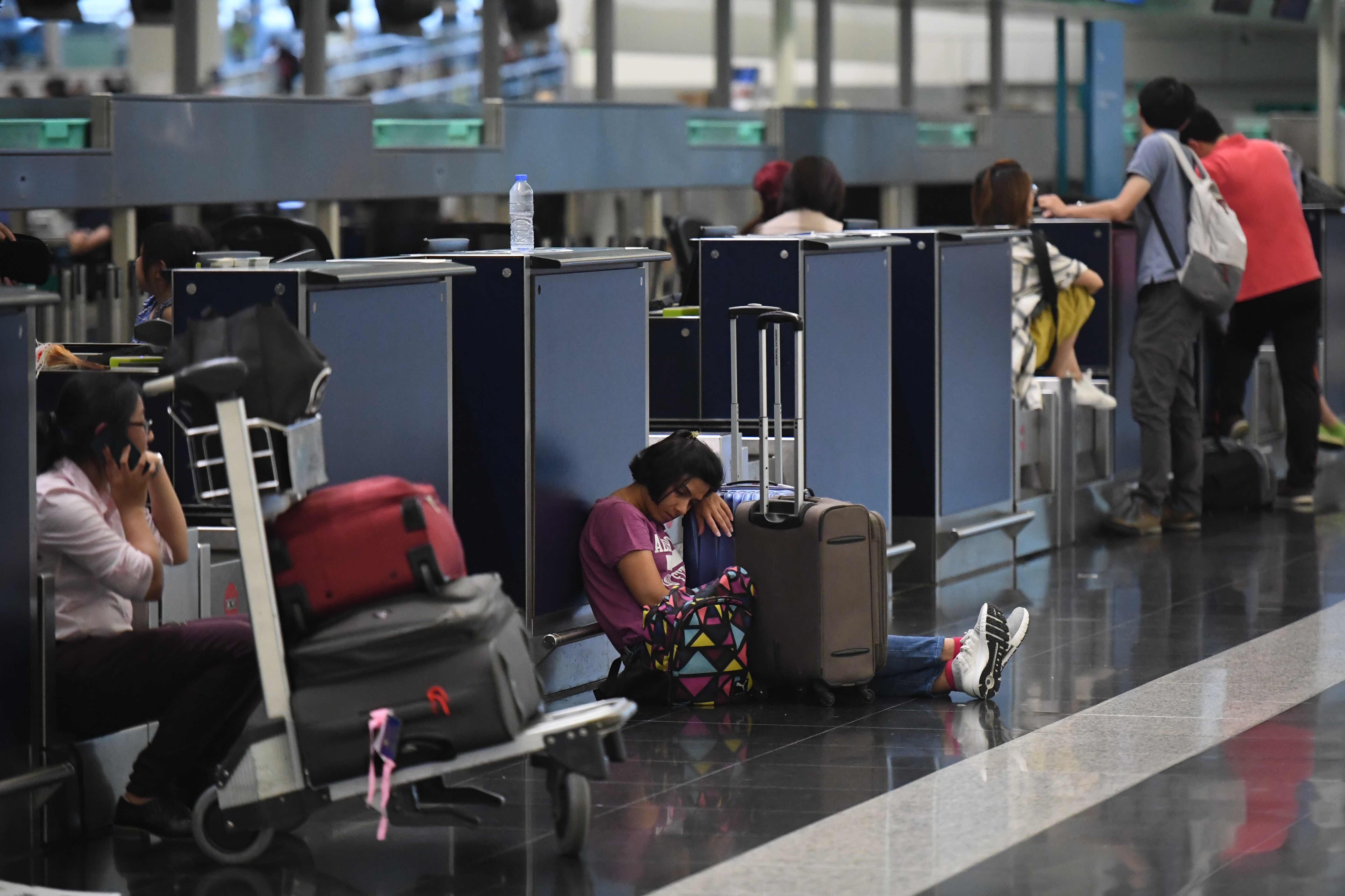 Stranded passengers are seen at Hong Kong International Airport in Hong Kong, south China, Aug. 12, 2019. (Xinhua/Lui Siu Wai)