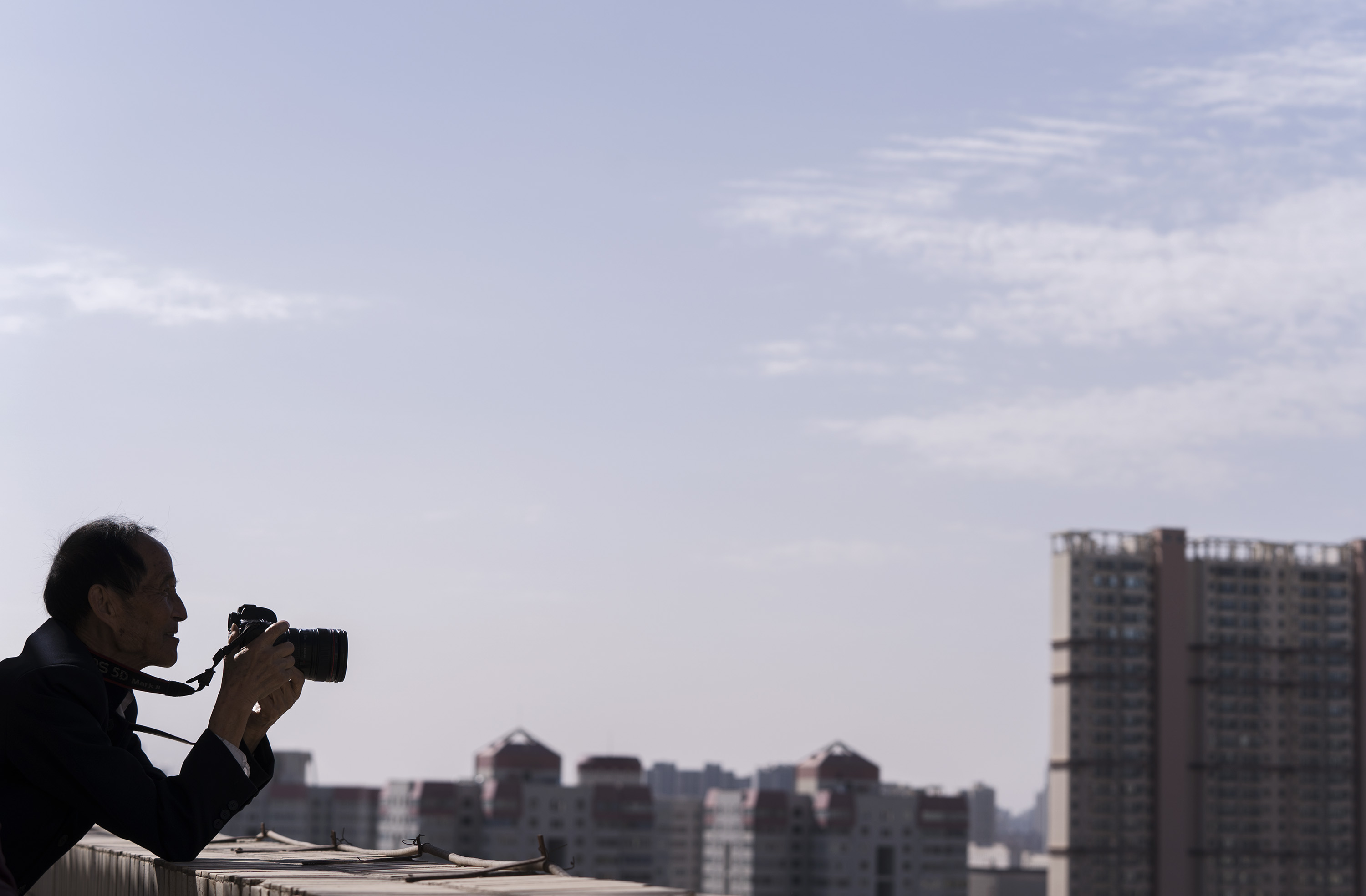 Li has walked to the furthest area of the city to shoot the landscape he desired.
