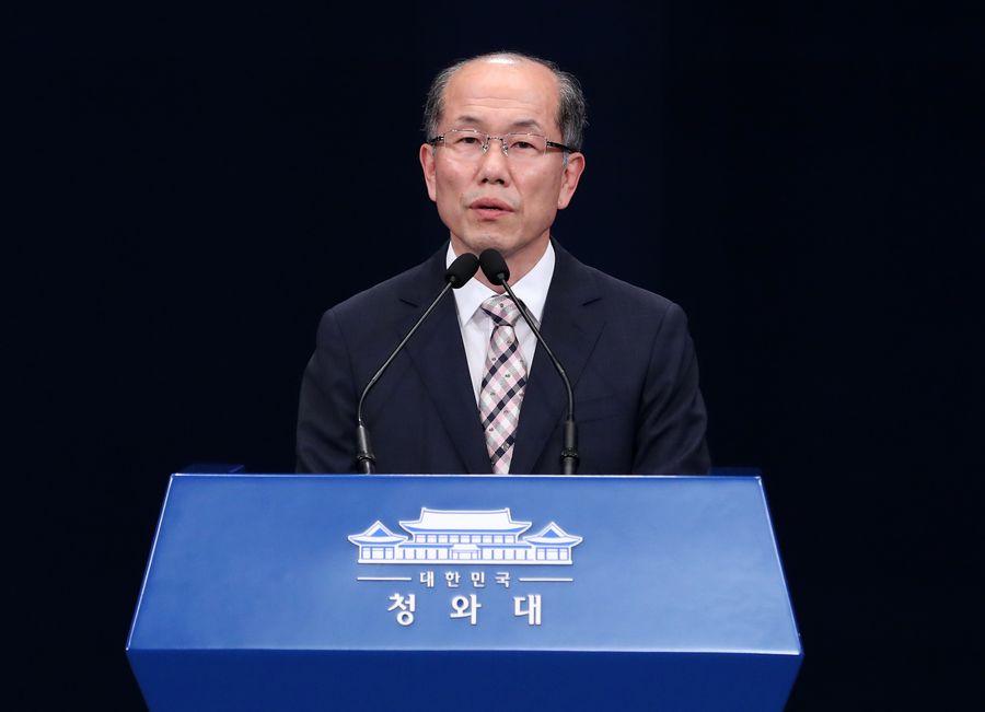 Kim You-geun, deputy director of South Korea's presidential national security office speaks at the presidential Blue House in Seoul, South Korea, on Aug. 22, 2019. (Xinhua/NEWSIS)