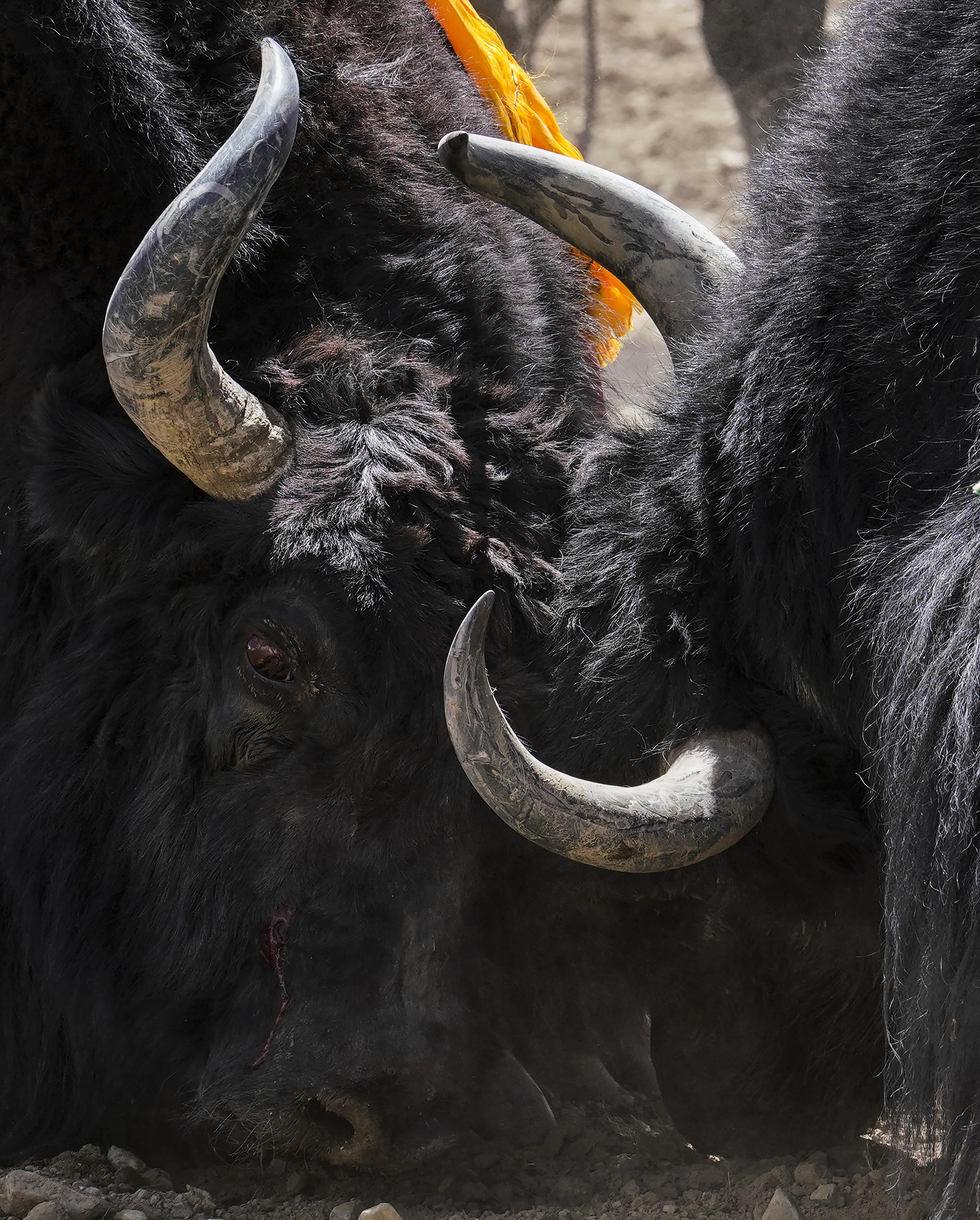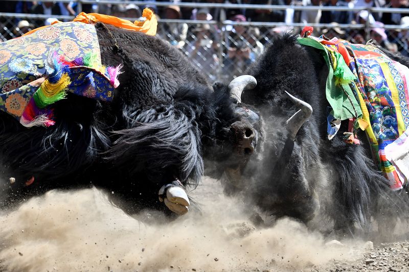 Yaks fight during a bullfighting festival in Zhexia Township, southwest China's Tibet Autonomous Region. (Xinhua/Li Xin)