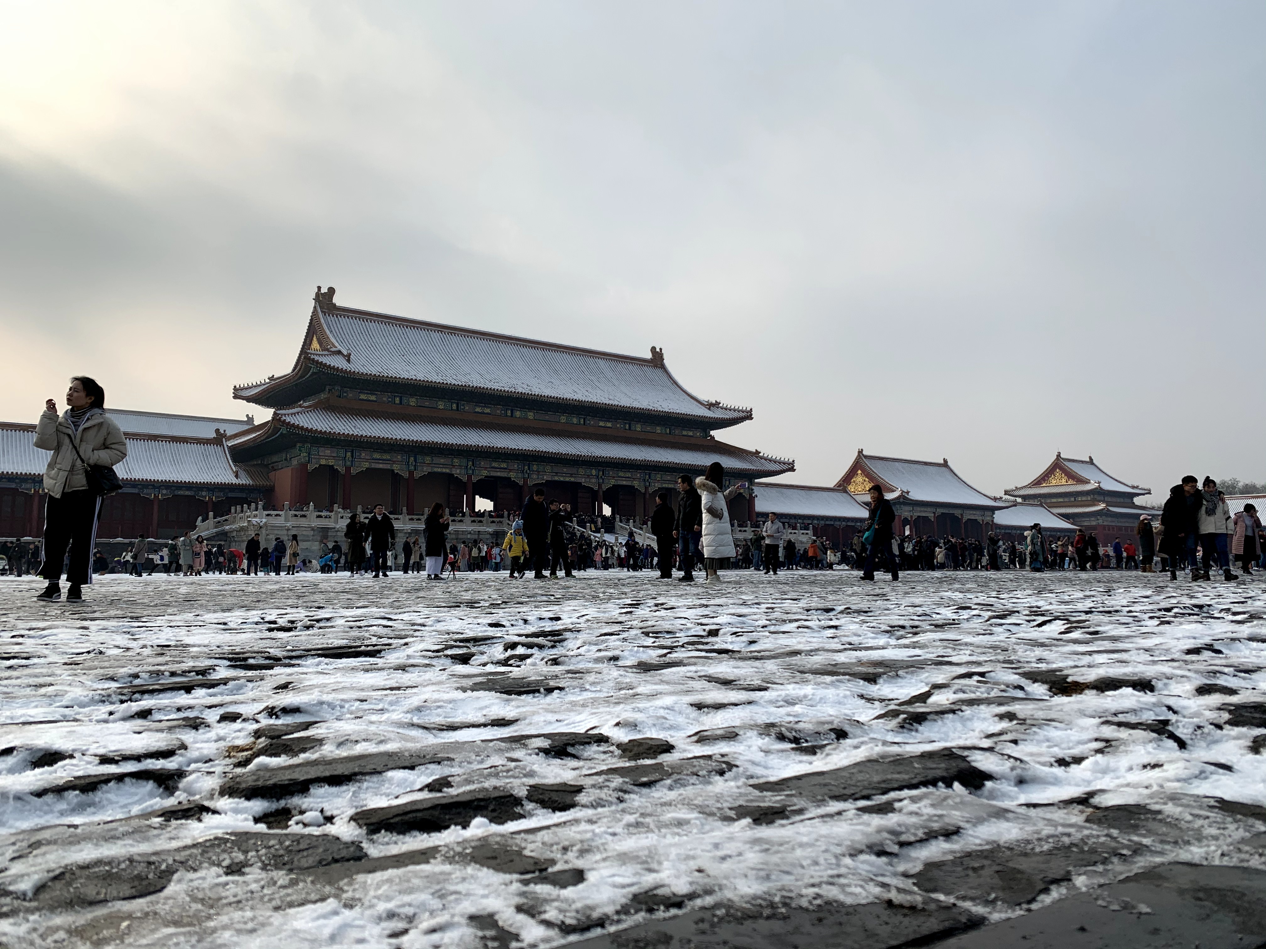 Mobile photo shows people visiting the Palace Museum after snow in Beijing, capital of China, Nov. 30, 2019. (Xinhua/Tian Chenxu)