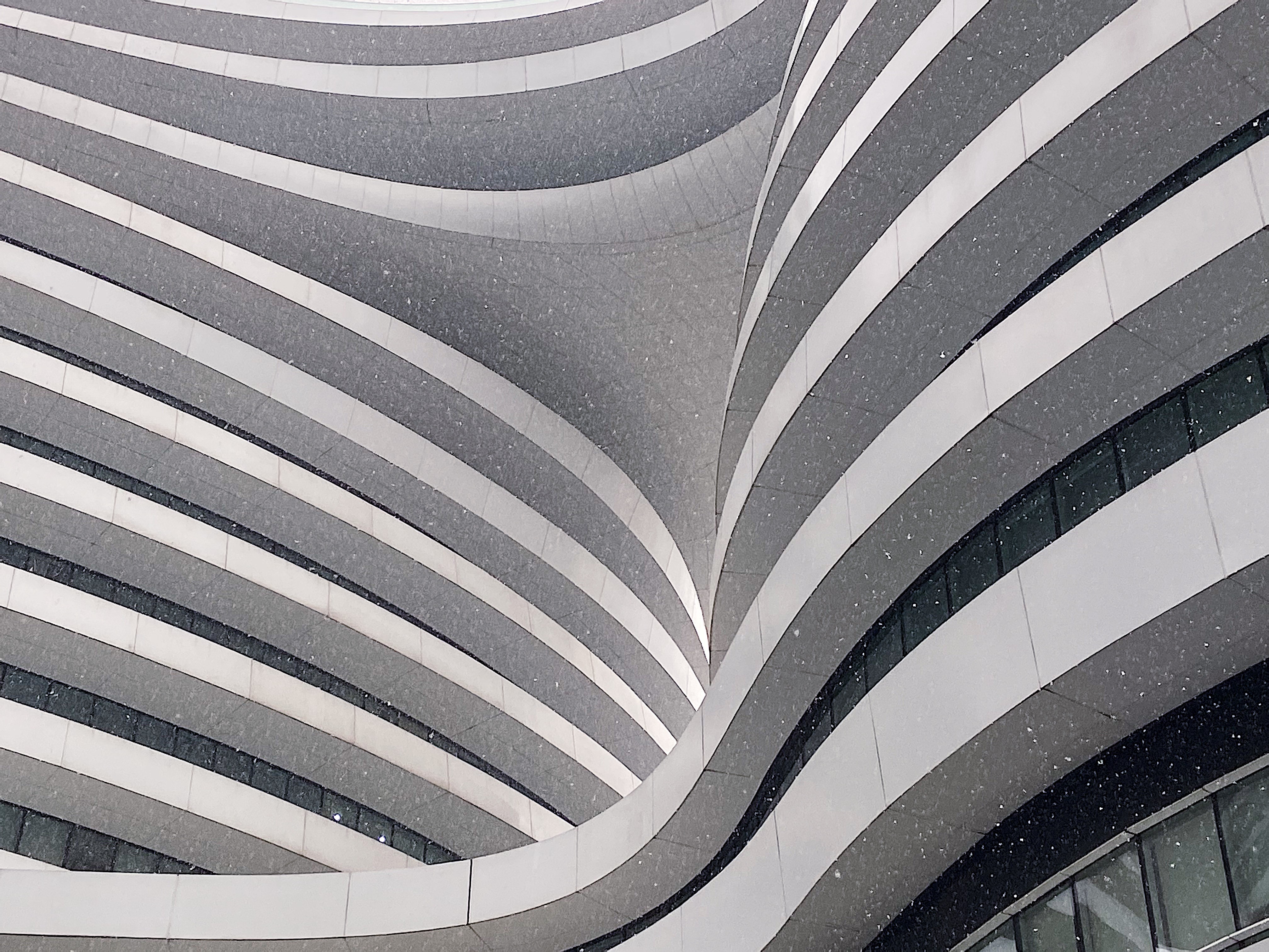 Mobile photo shows snowfall at GALAXY SOHO in Beijing, capital of China, Dec. 16, 2019. (Xinhua/Meng Dingbo)
