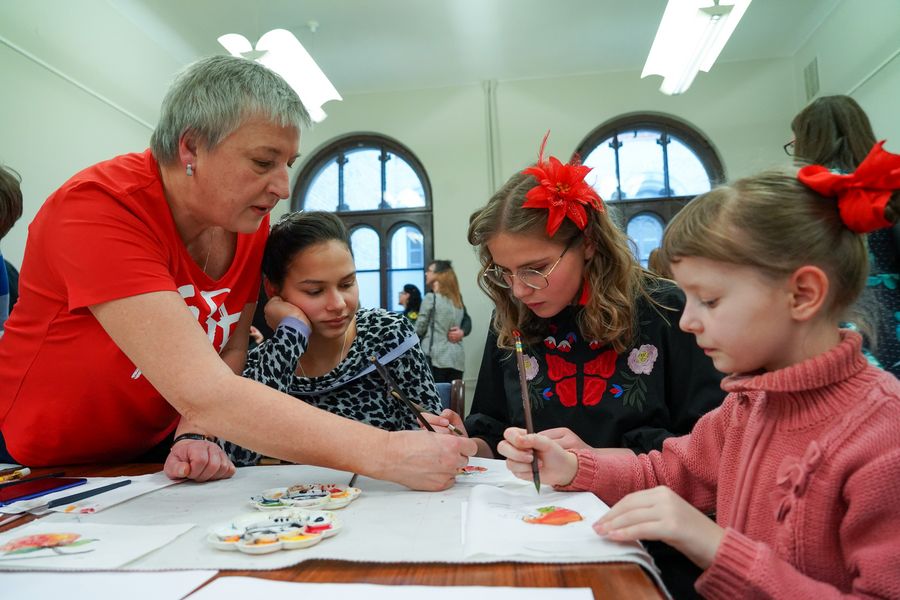 Children take part in a painting workshop during the Chinese Lunar New Year celebrations in Riga, Latvia, on Jan. 25, 2020. (Photo by Janis/Xinhua)