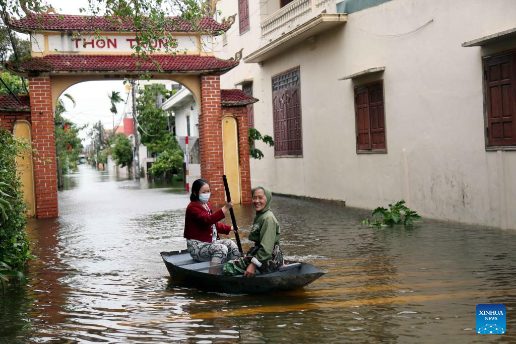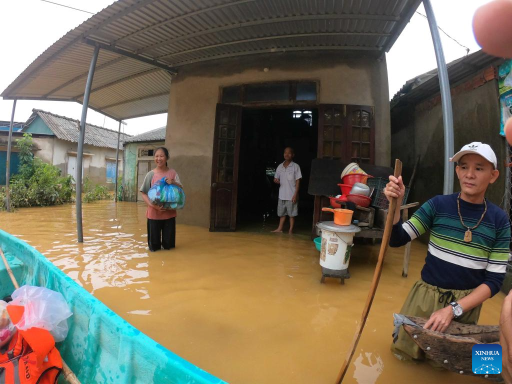 Residents travel by boat as flooding continues in Quang Ninh Commune, Quang Tri Province, Vietnam, Nov. 4, 2025. The death toll from heavy rains and flooding in Vietnam's central region has risen to 47, with eight people missing and 130 others injured, the Vietnam Disaster and Dyke Management Authority reported Wednesday. (VNA/Handout via Xinhua)