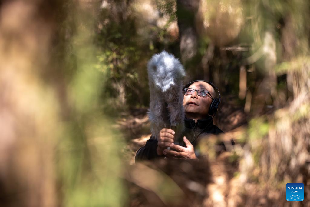 He Dehua collects sounds of birds at a park at the ancient city of Lijiang, southwest China's Yunnan Province, Jan. 16, 2026. He Dehua, 51, and his wife refurbished an old house of theirs in October 2025, and turned it into a music club called "Wayfarers," where they can share their personal stories with travelers and long-lost friends.