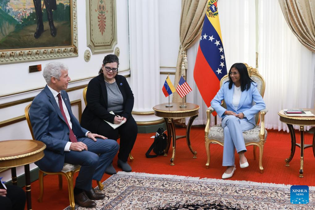 CARACAS, Feb. 11 (Xinhua) -- Venezuela's acting president Delcy Rodriguez met with U.S. Energy Secretary Chris Wright at the Miraflores Palace on Wednesday to review the bilateral energy agenda.