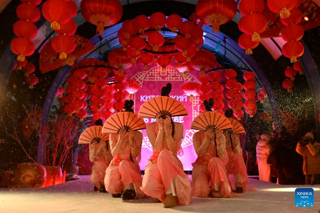 Actresses perform during an opening ceremony of celebrations for the Chinese New Year in Moscow, Russia, Feb. 16, 2026. (Photo by Alexander Zemlianichenko Jr/Xinhua)