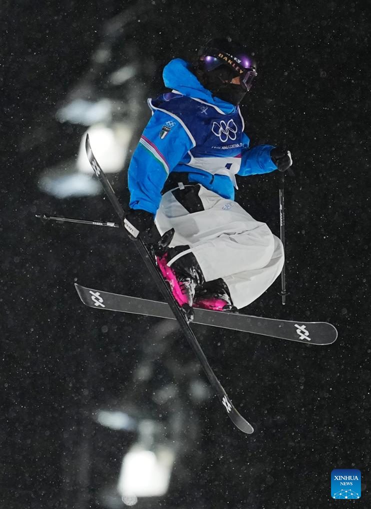 Flora Tabanelli of Italy competes during the freestyle skiing women's freeski big air final at the Milan-Cortina 2026 Olympic Winter Games in Livigno, Italy, Feb. 16, 2026. (Xinhua/Hu Chao)