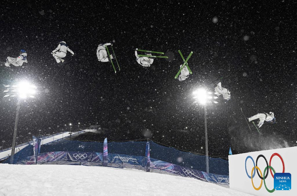 Liu Mengting of China competes during the freestyle skiing women's freeski big air final at the Milan-Cortina 2026 Olympic Winter Games in Livigno, Italy, Feb. 16, 2026. (Xinhua/Xia Yifang)