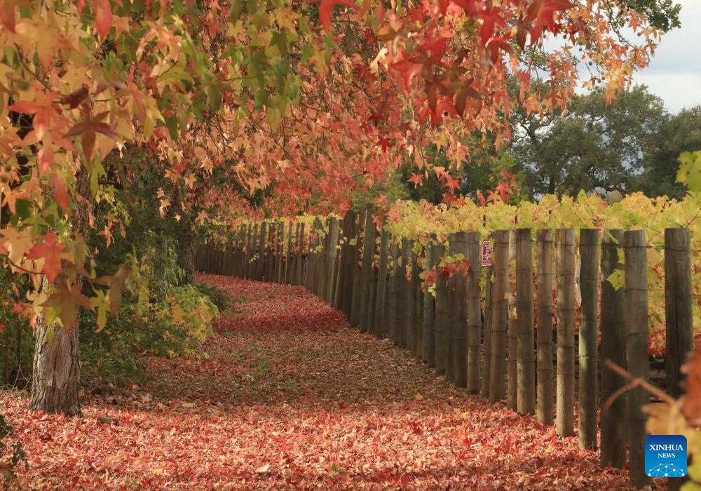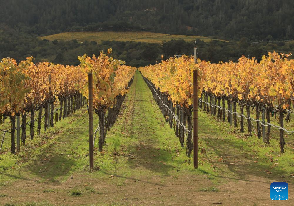 This photo taken on Nov. 4, 2025 shows a view of a vineyard at Napa Valley in California, the United States. (Photo by Liu Yilin/Xinhua)