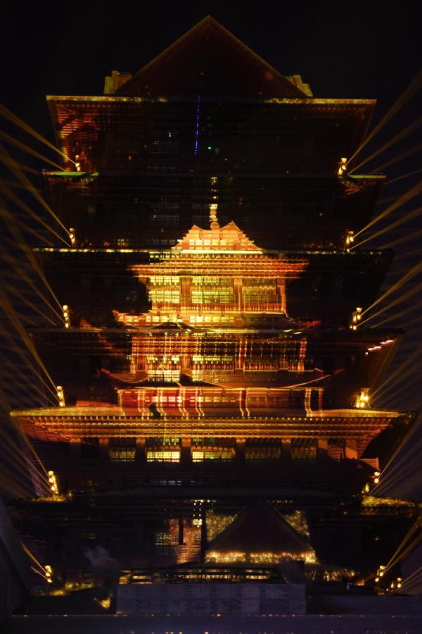 元旦期間,位于甘肅省蘭州市七里河區的蘭州黃河樓景區上演《大有蘭州》光影秀,表演分為“源之大河”“金之大城”“民之大韻”“蘭之大州”四個主題篇章,讓游客在黃河之濱感悟黃河文化。