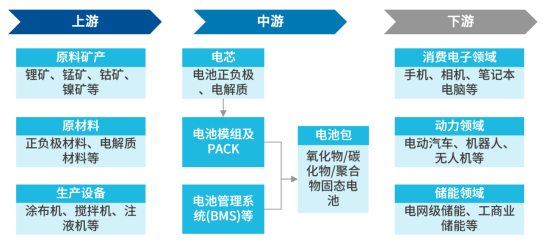 下面的图以固态电池为例,展示了锂电池的产业链情况。