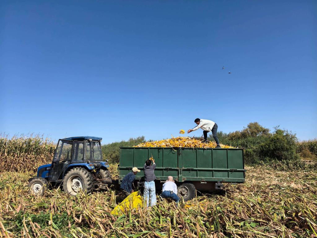 内蒙古巴彦淖尔市种植户收获玉米。新华社记者李云平摄