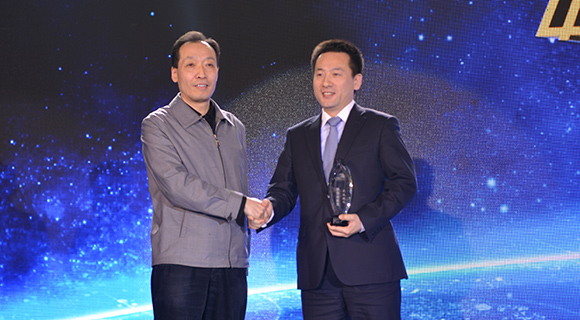 1月15日,新華網常務副總裁魏紫川(右一)為倍杰特、豐田中國頒發2014年度中國企業社會責任最佳綠色環保獎。