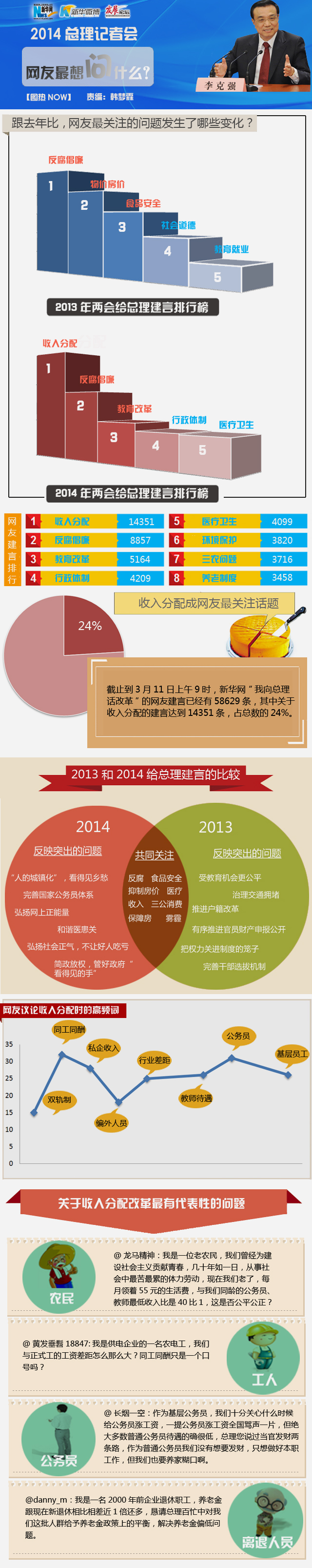 3月13日上午,國(guó)務(wù)院總理李克強(qiáng)將與中外記者見(jiàn)面,回答大家的問(wèn)題。這是李克強(qiáng)總理第二次總理記者會(huì),今年新華網(wǎng)推出了大型互動(dòng)專(zhuān)題"我和總理話改革",收到了數(shù)萬(wàn)條網(wǎng)友建言,在這些建言中,哪些問(wèn)題是網(wǎng)友最關(guān)心的,如果是網(wǎng)友在記者會(huì)上提問(wèn),他們最想問(wèn)什么?
