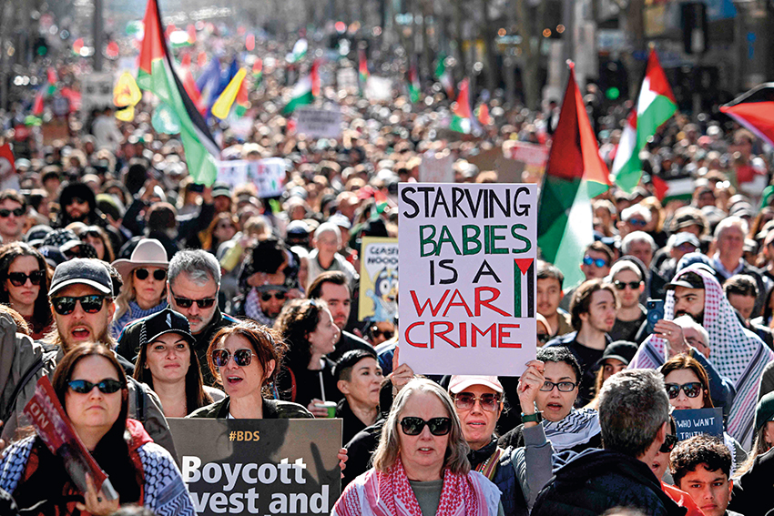 8月24 日,人们在澳大利亚墨尔本参加游行集会,呼吁尽快结束巴勒斯坦加沙地带正在发生的冲突与饥荒