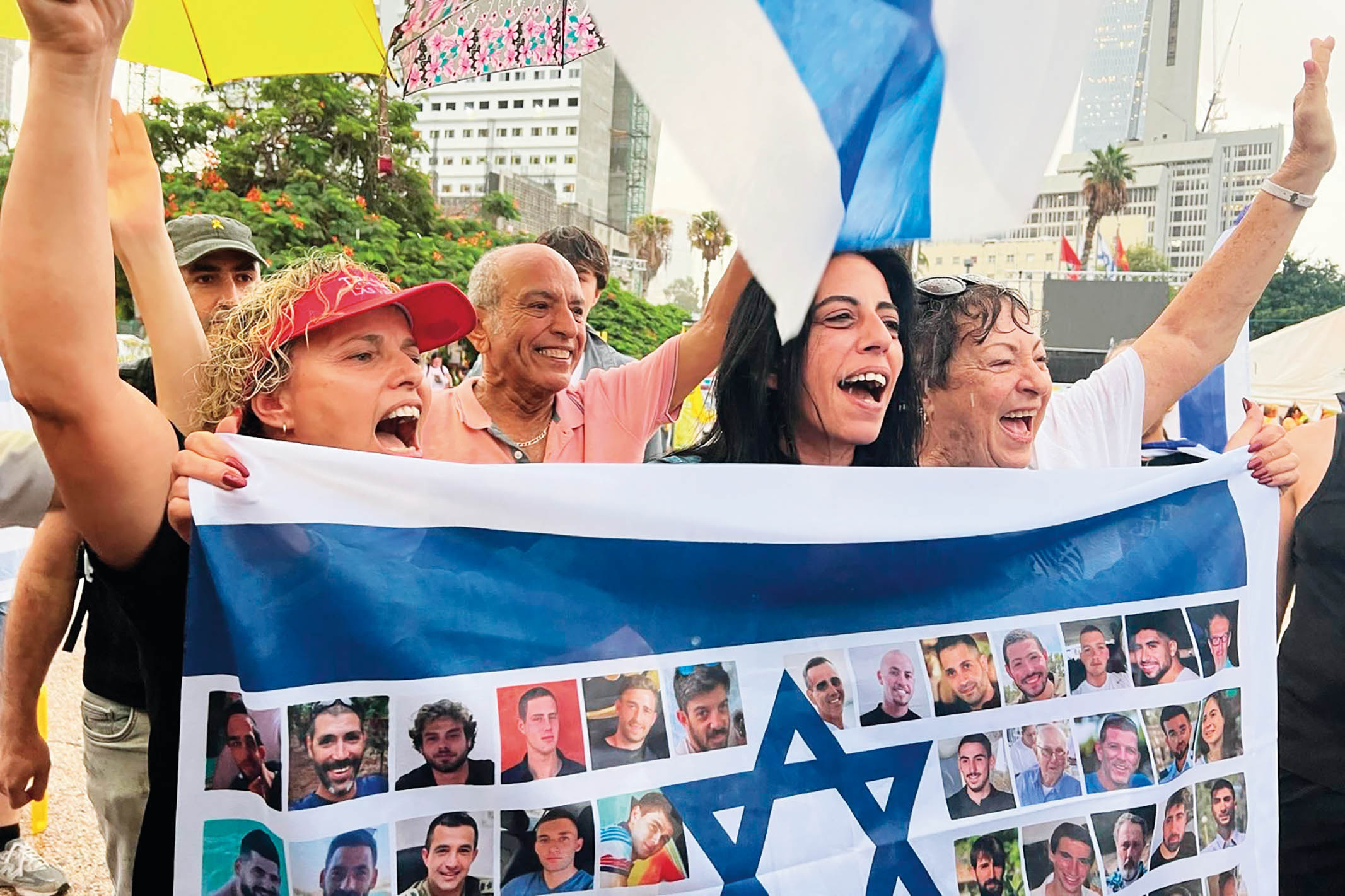 10月9日,以色列被扣押人员亲友在特拉维夫庆祝达成停火协议